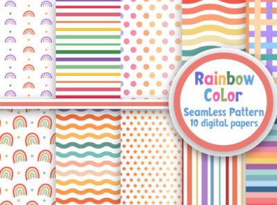 Rainbow Color Patterns Digital Paper Graphic by Vinici Studio ...