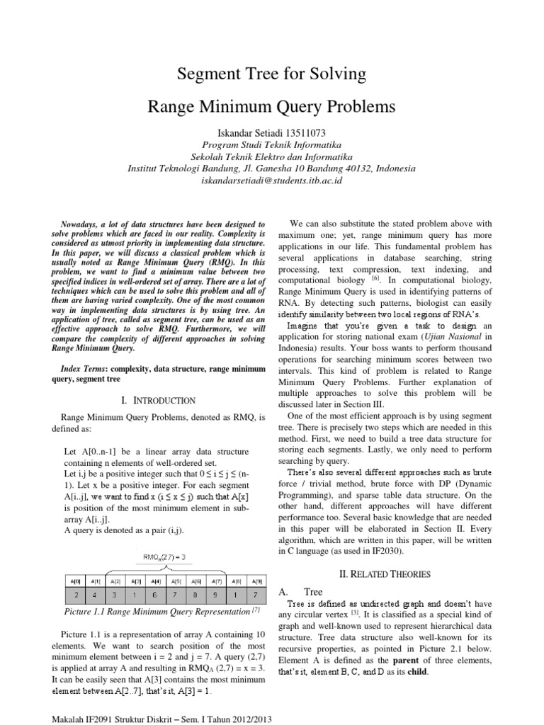 Segment Tree For Solving Range Minimum Query Problems | PDF | Dynamic ...