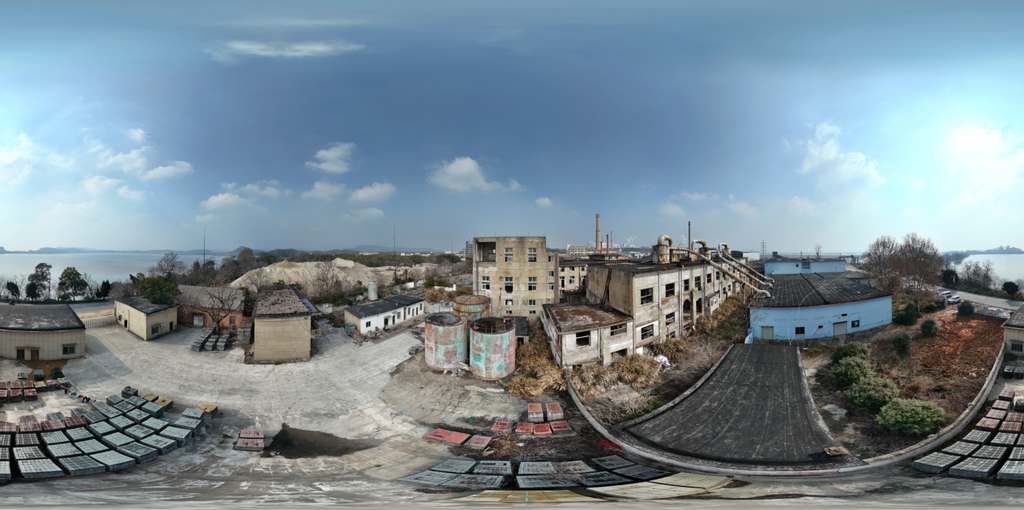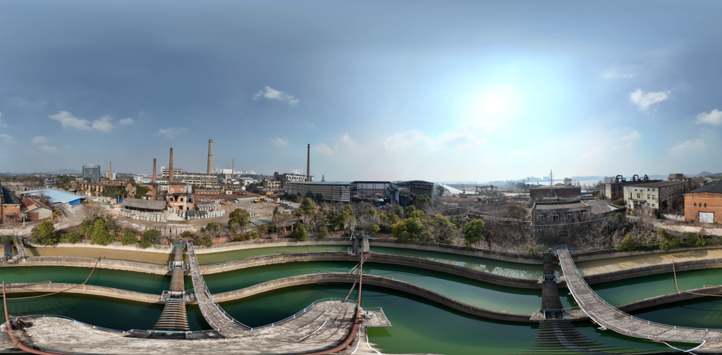 Abandoned factory roof sunshine clouds | Urban Elements HDRis | BlenderKit