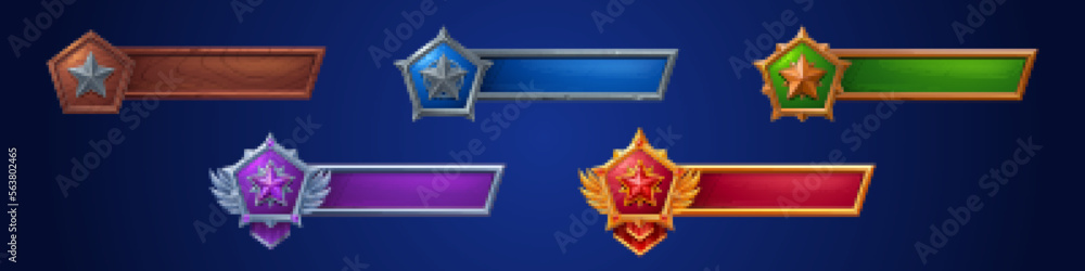 Set of military game rank badges isolated on background. Vector cartoon ...