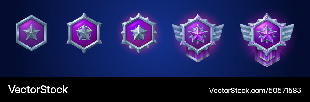 Set of medieval game reward badges isolated on dark background. Vector ...