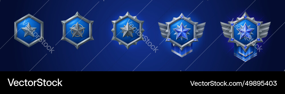 Set of game rank icons isolated. Bronze, silver and gold game badges ...