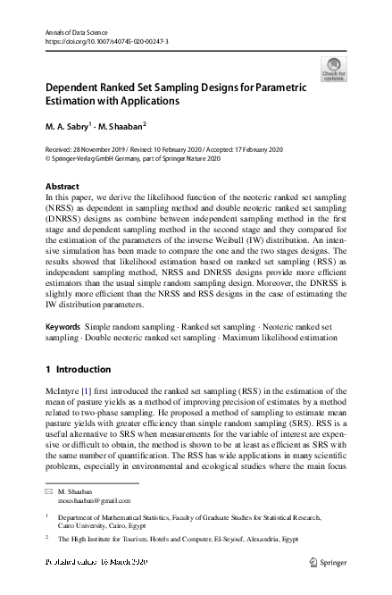 (PDF) Dependent Ranked Set Sampling Designs for Parametric Estimation ...