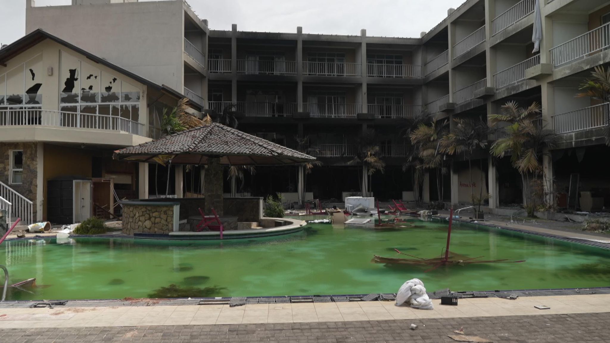Inside 'apocalyptic' abandoned hotel with rotting pool…