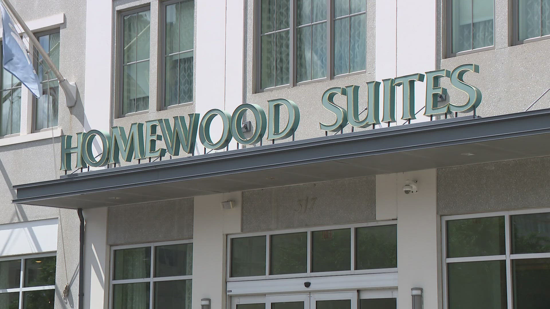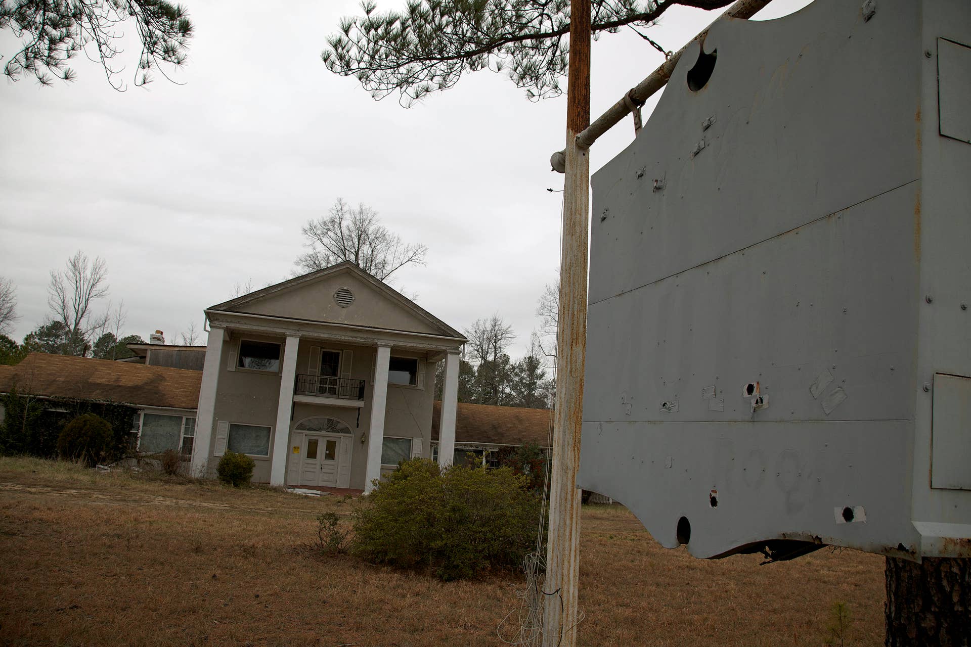 Large hotel left ransacked, visible from interstate