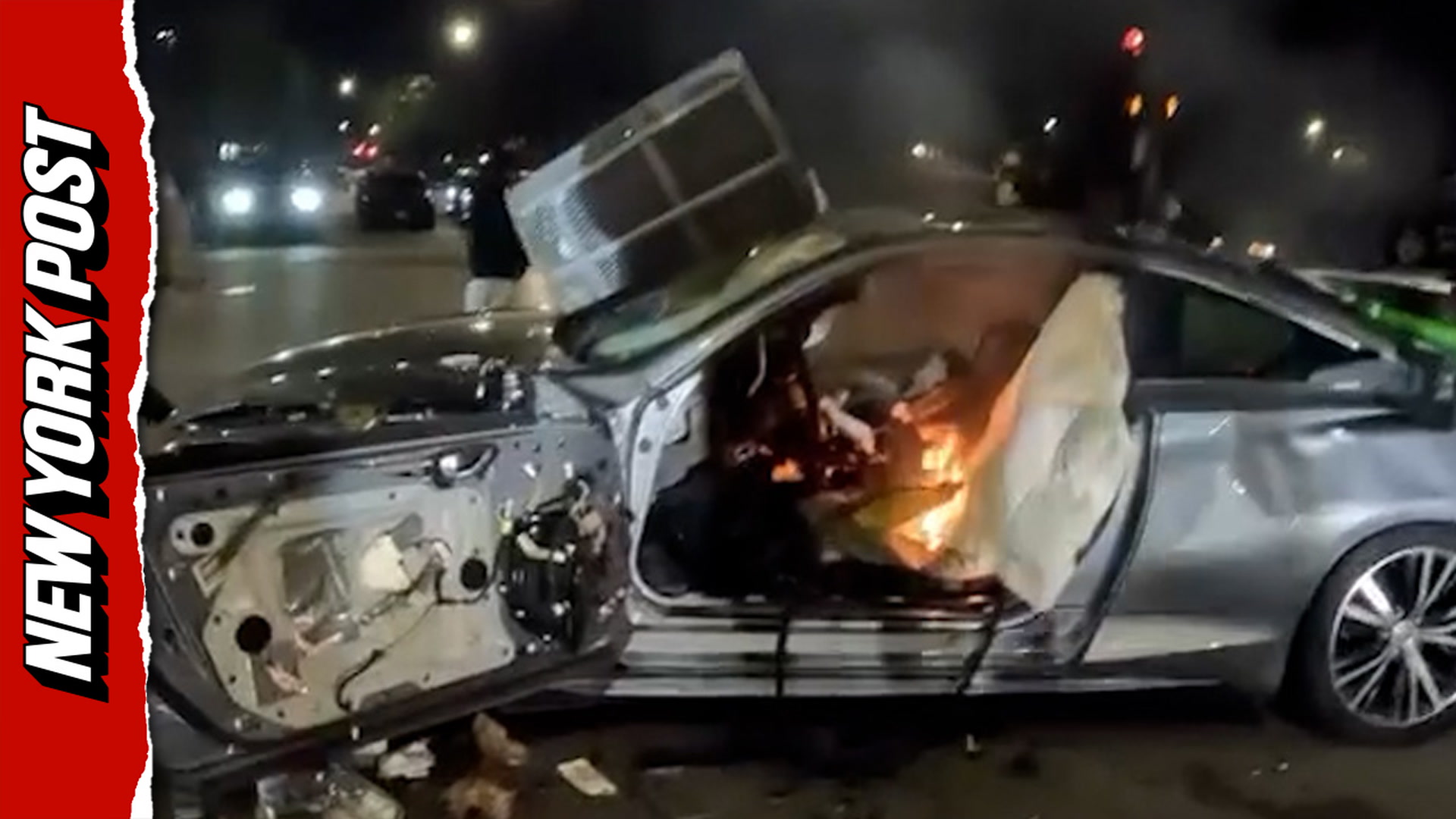 Ransacked car explodes during Chicago street takeover chaos - video ...