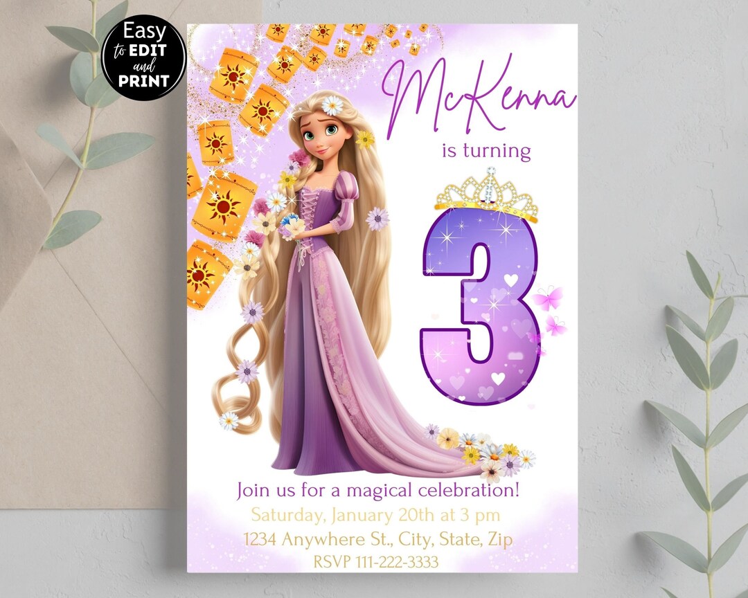 Editable Rapunzel Birthday Invitation, Princess Birthday Invitation ...