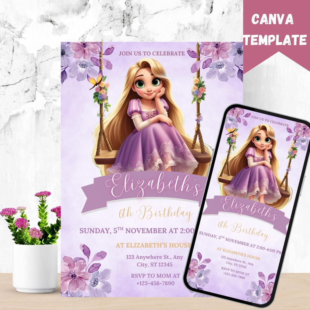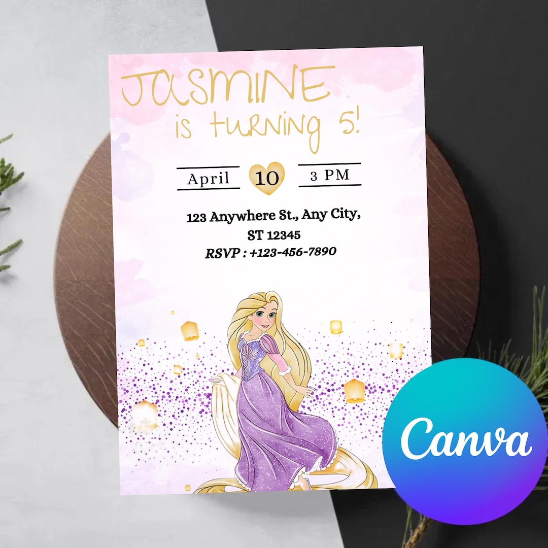 Rapunzel Themed Birthday Invitation | Canva Template | Digital Download ...