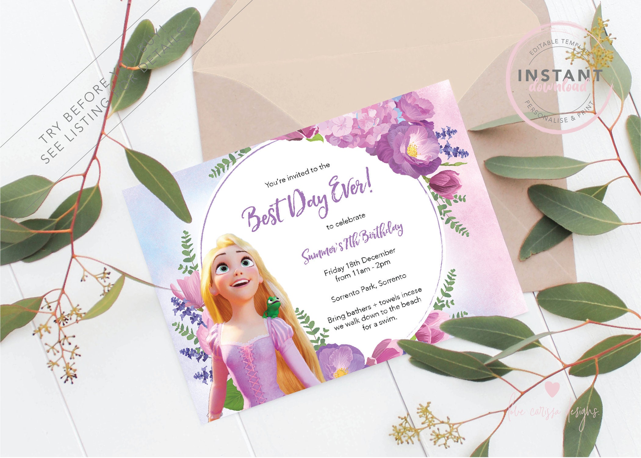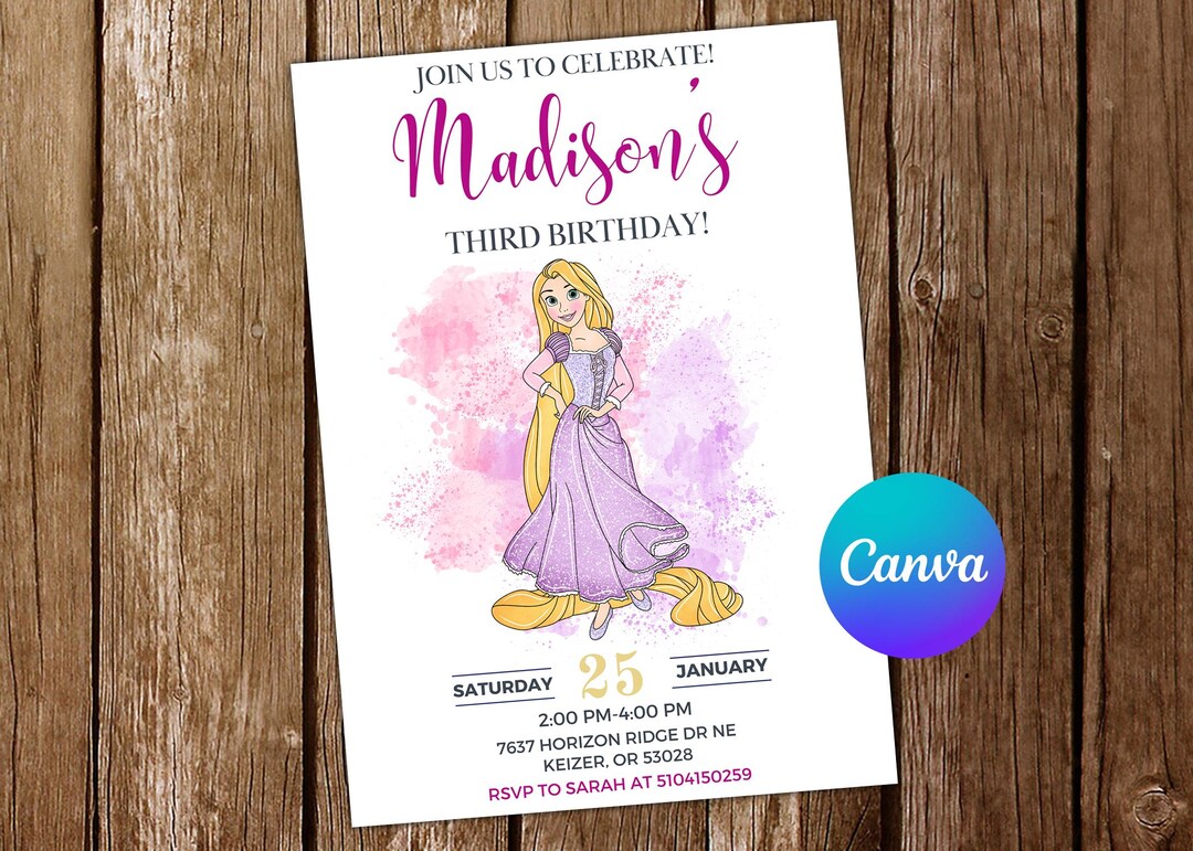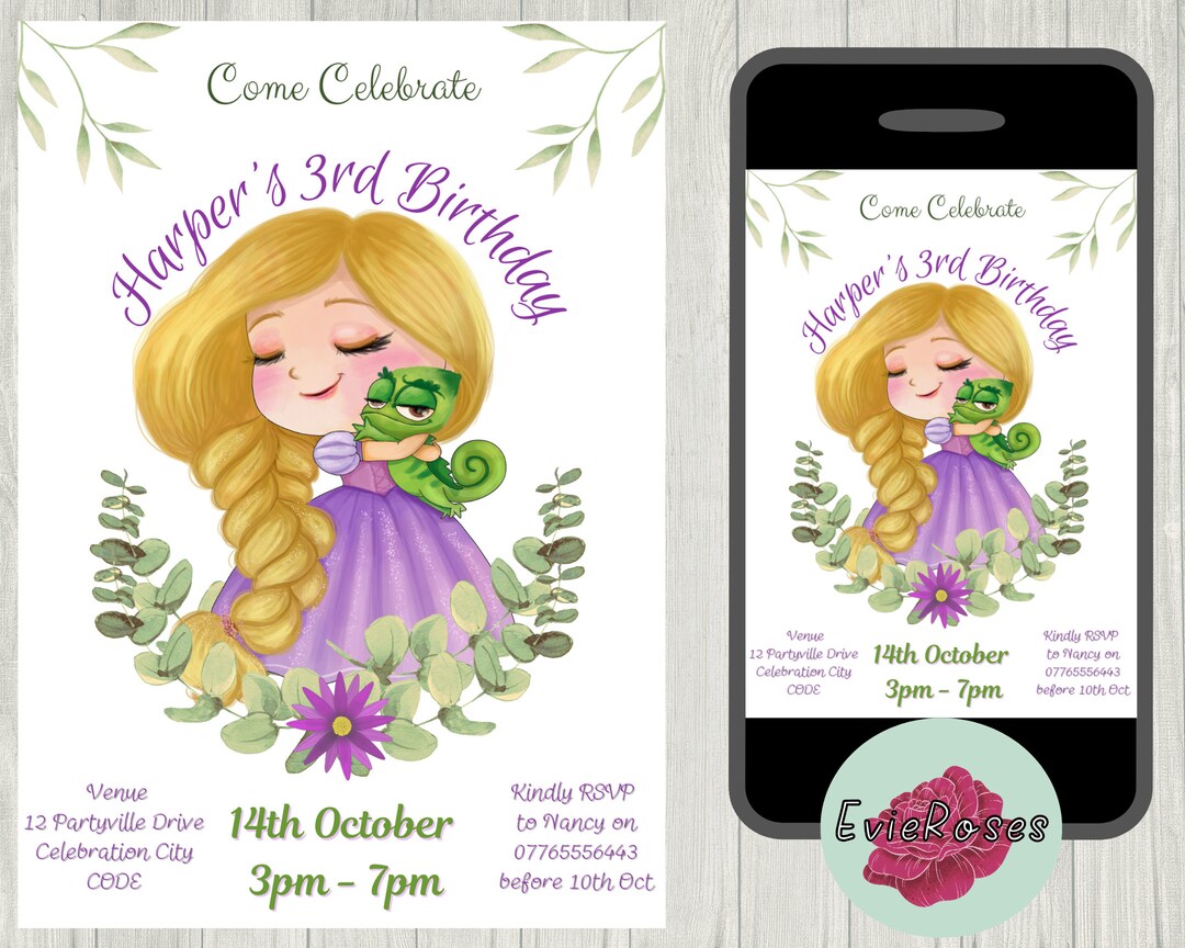 Editable Rapunzel Birthday Invitation, Princess Birthday Invitation ...