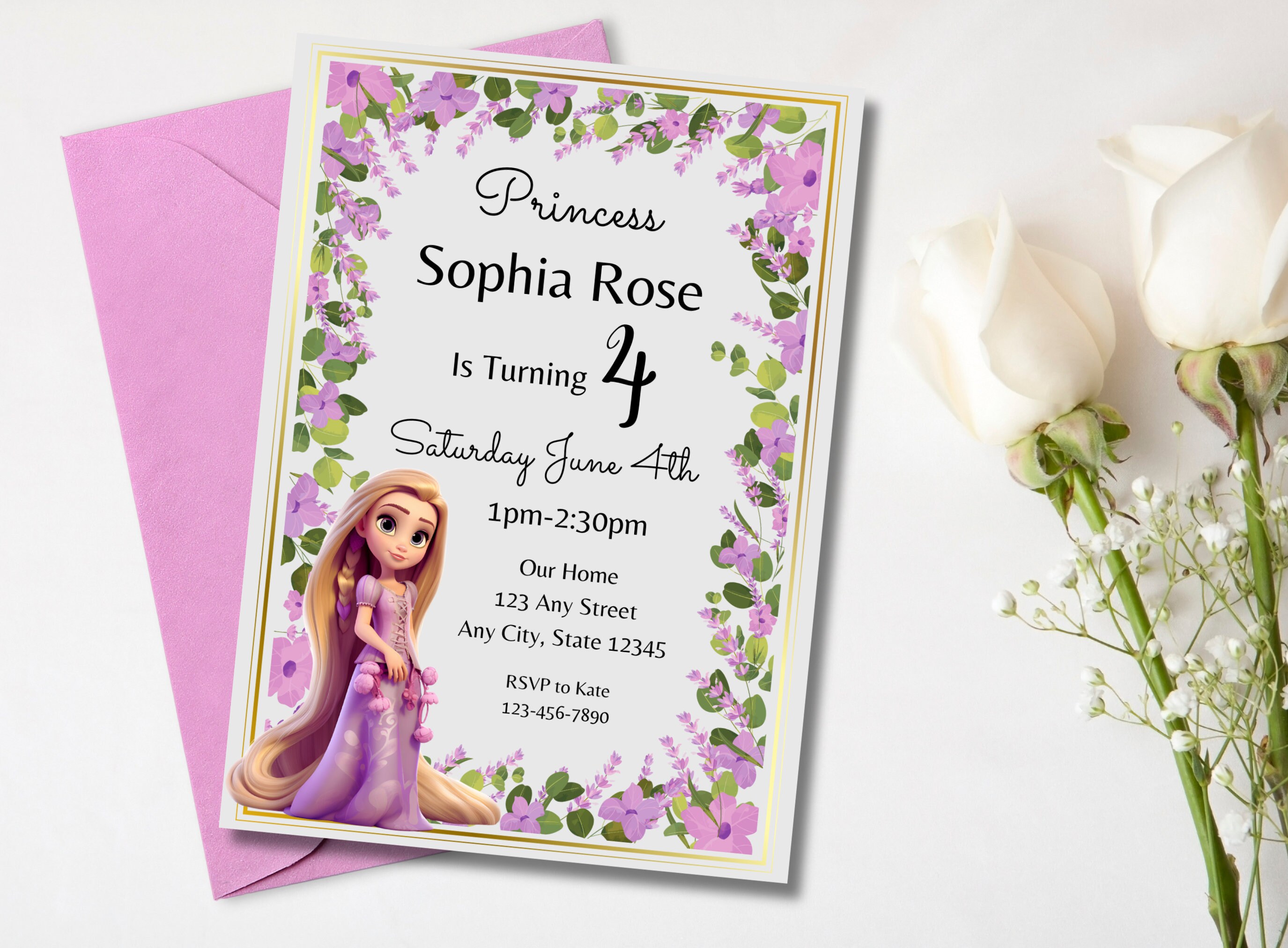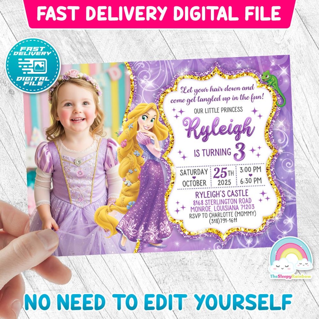 Princess Rapunzel Birthday Invitation, Princess Rapunzel, Rapunzel ...