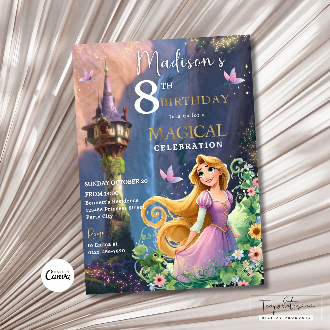 Editable Rapunzel Birthday Invitation Tangled Birthday Invite Magical ...