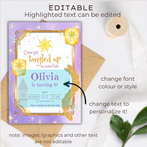 Editable Rapunzel Birthday Invitation| Rapunzel Birthday Party| Tangled ...