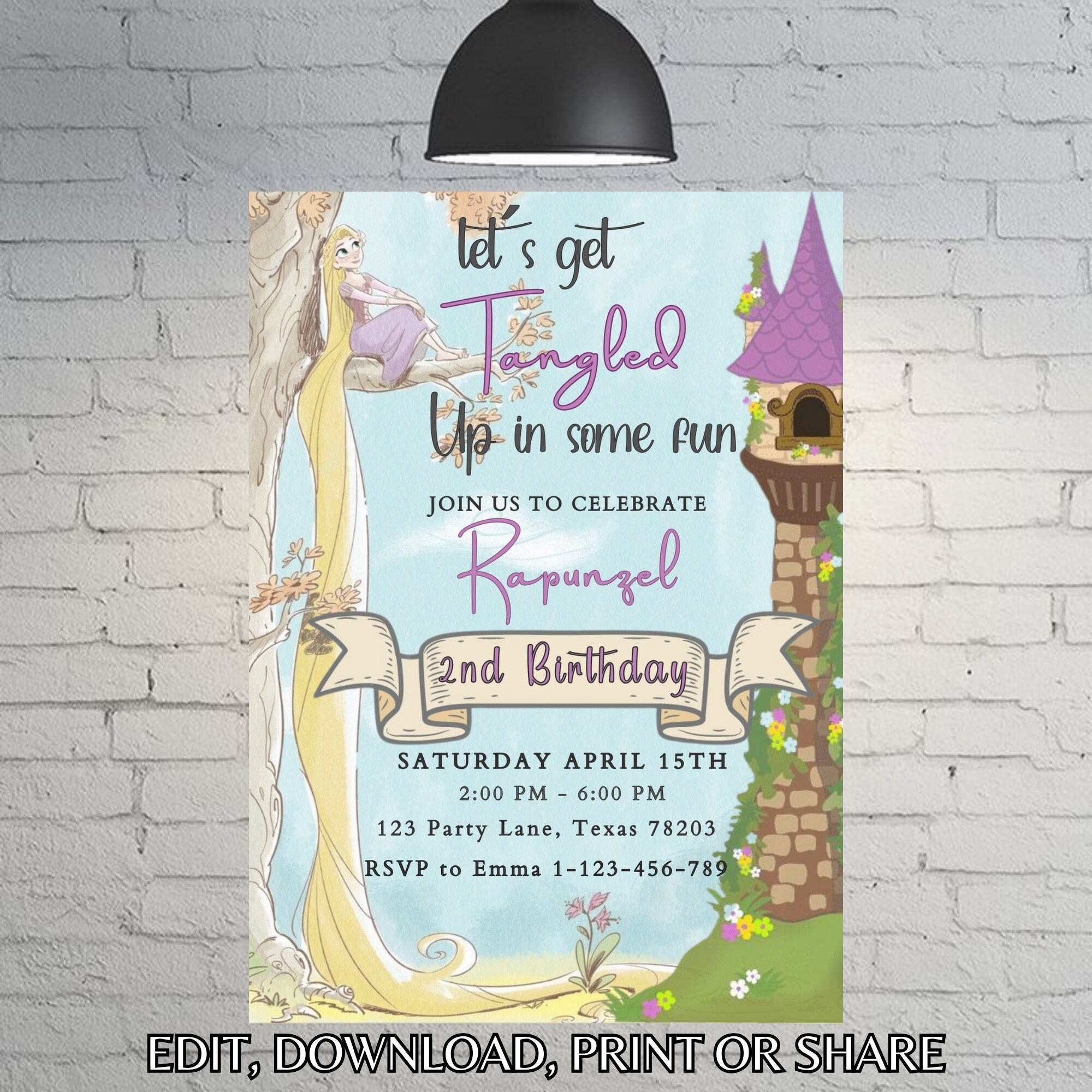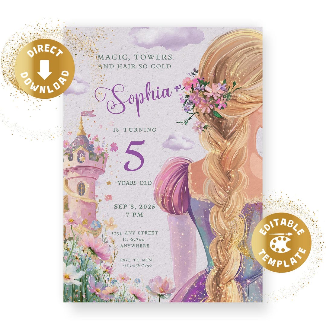 Editable Rapunzel Birthday Invitation Template, Printable Birthday ...