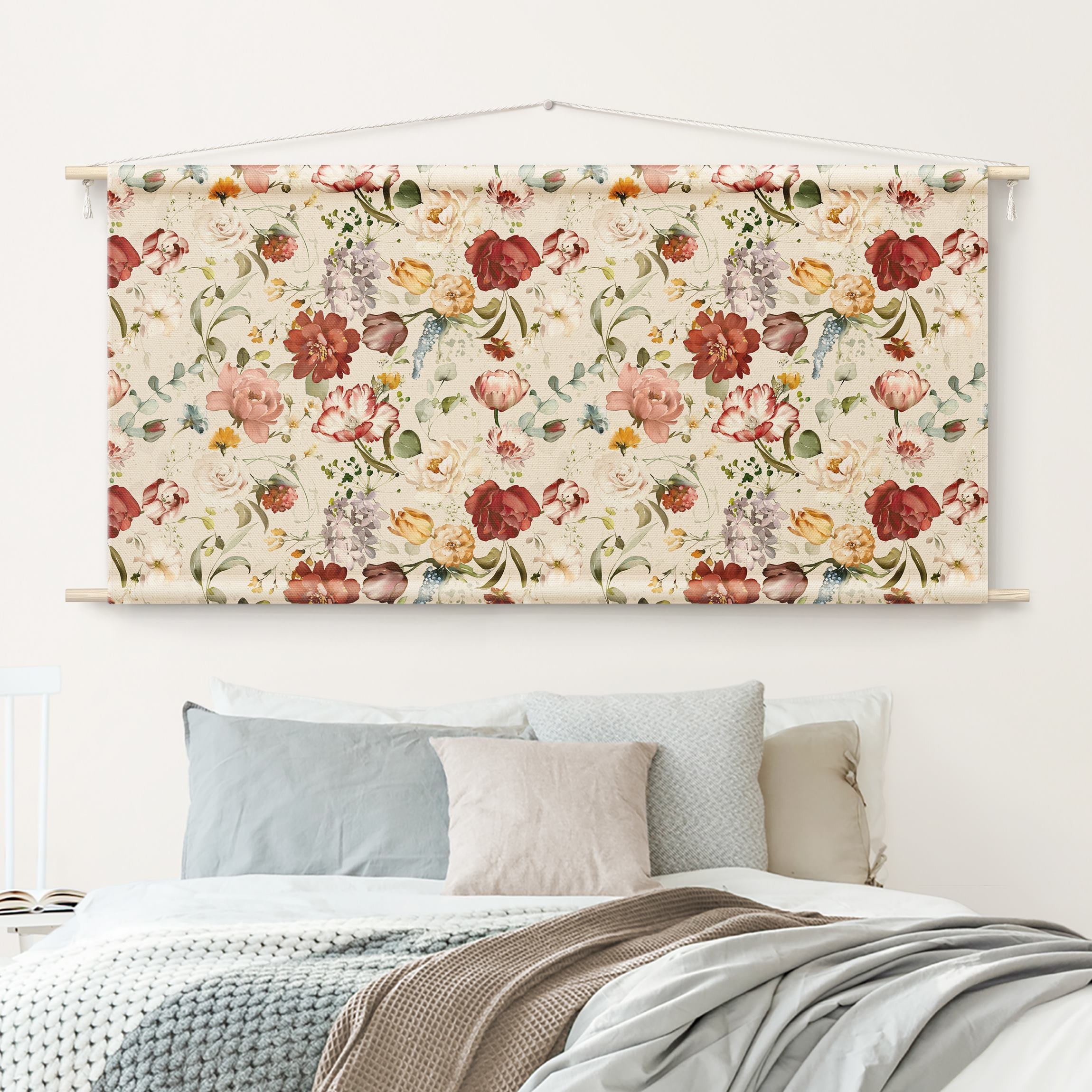 Tapiz - Flowers Watercolour Vintage Pattern on Beige 110 x 55 cm ...