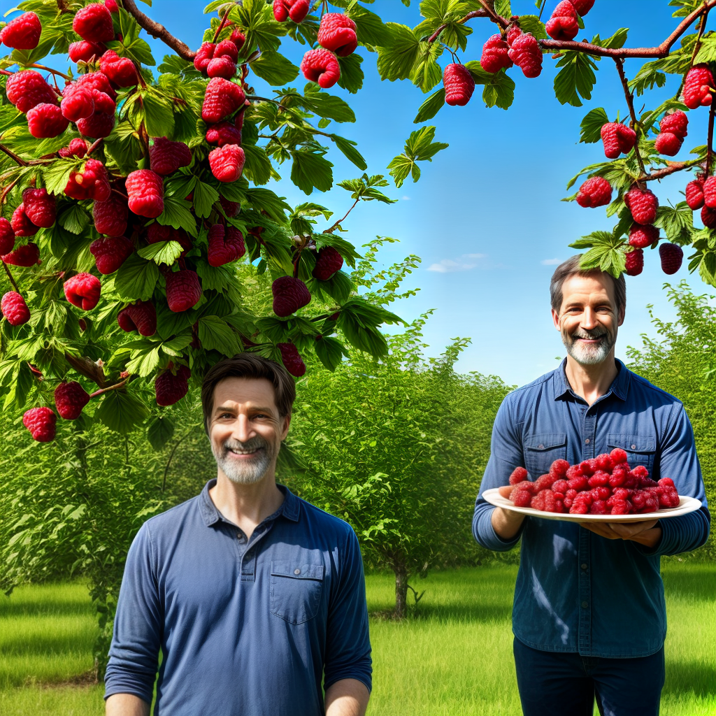 "A raspberry garden made of raspberries a man was there, his eyes ...
