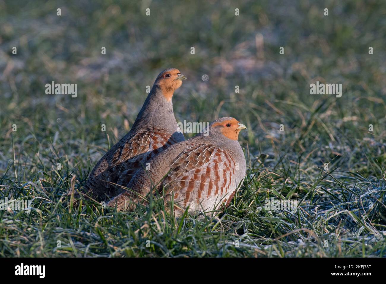 Grey partridges - Stock Image - C059/1851 - Science Photo Library