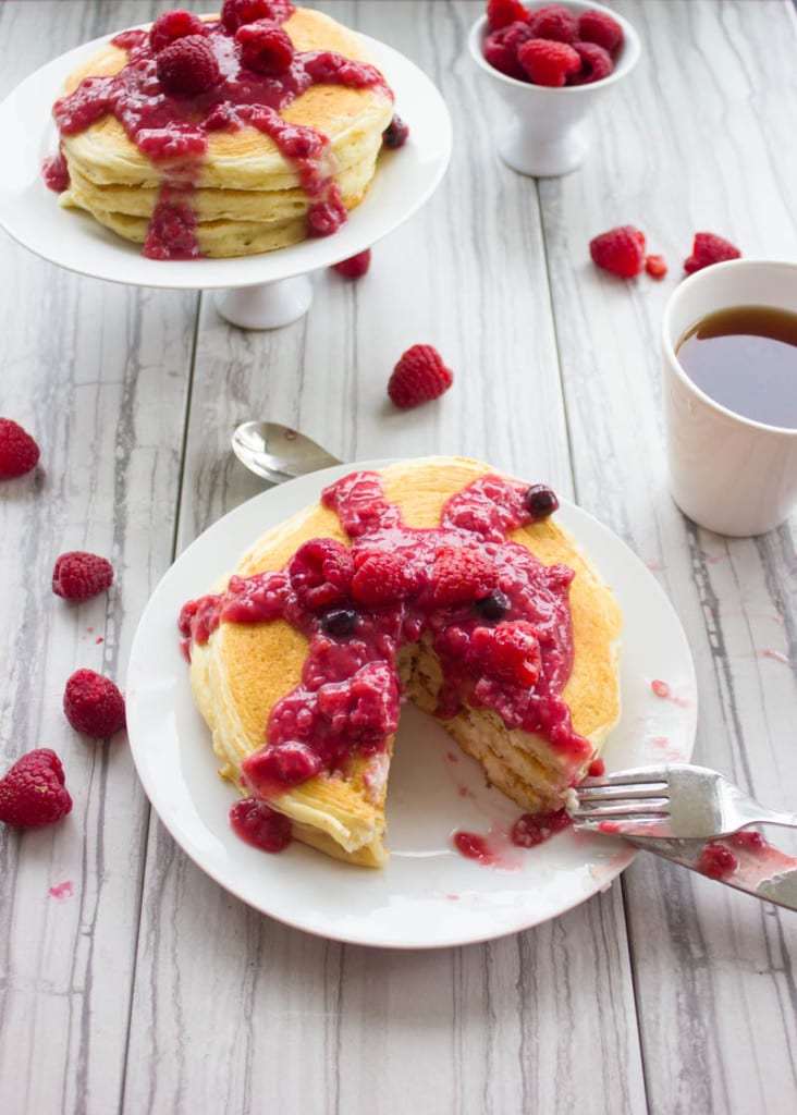 Simple Savory & Satisfying: Pancakes with Raspberry Sauce