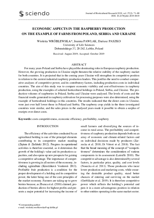 (PDF) Economic Aspects in the Raspberry Production on the Example of ...