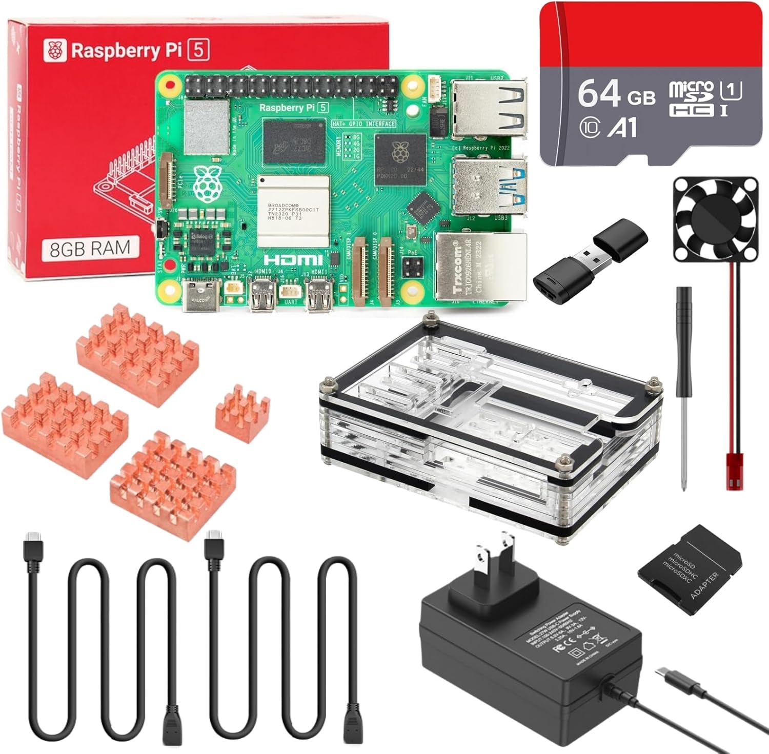 RasTech Raspberry Pi 5 8GB Starter Kit with 64GB Micro SD Card 4 Pure ...