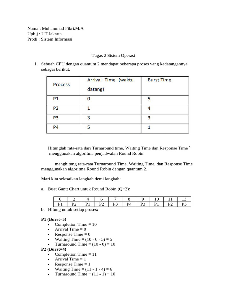 Analisis Rata-Rata Waktu Proses dengan Algoritma Round Robin | Course Hero
