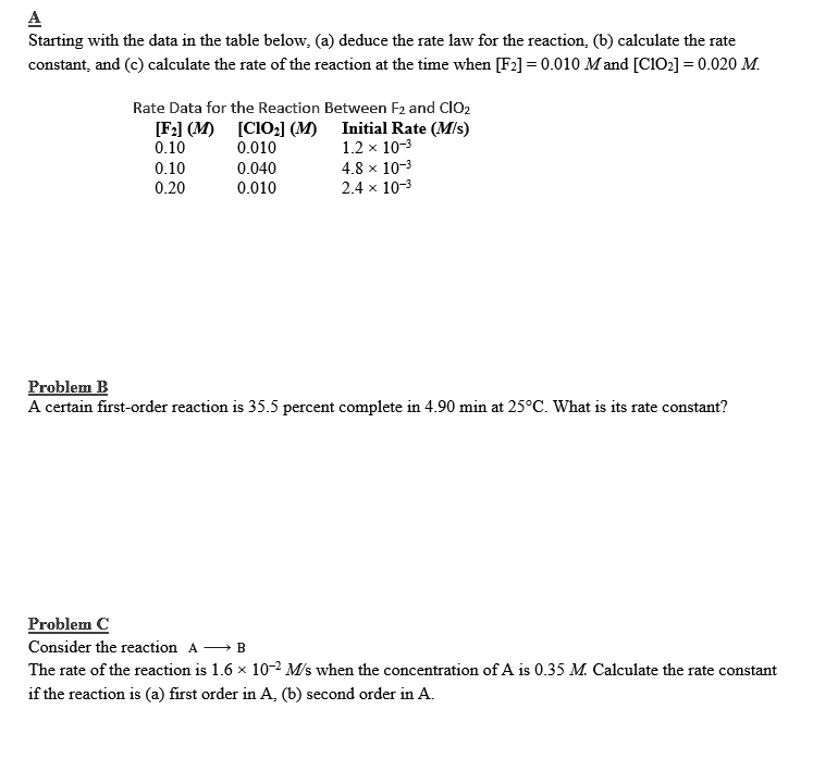 SOLVED:these problems, you will calculate the rate constant for each ...