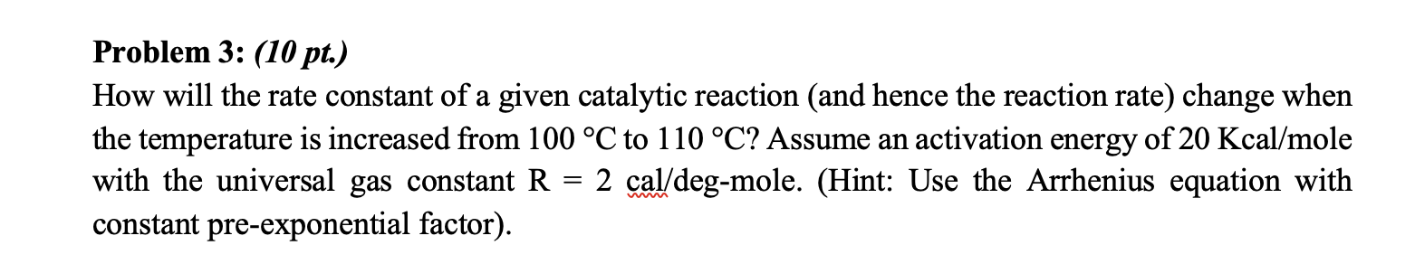 Solved Problem 3: (10 pt.) How will the rate constant of a | Chegg.com