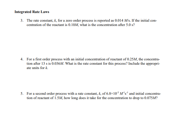 Solved Integrated Rate Laws 3. The rate constant, k, for a | Chegg.com