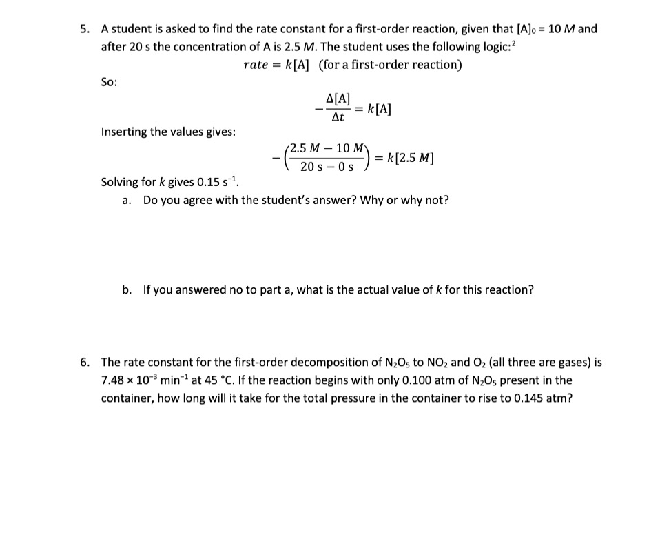 Solved 5. A student is asked to find the rate constant for a | Chegg.com