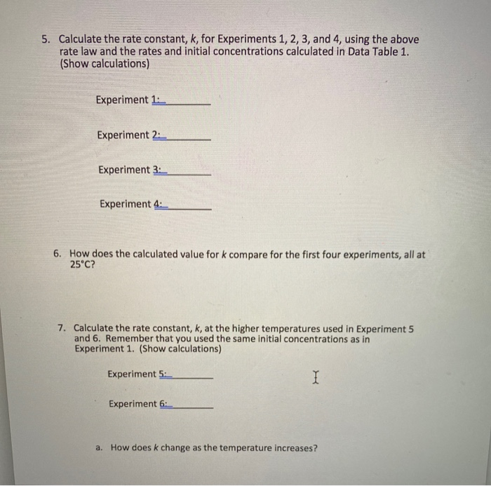 5. Calculate the rate constant for Experiments 1,2,3, | Chegg.com