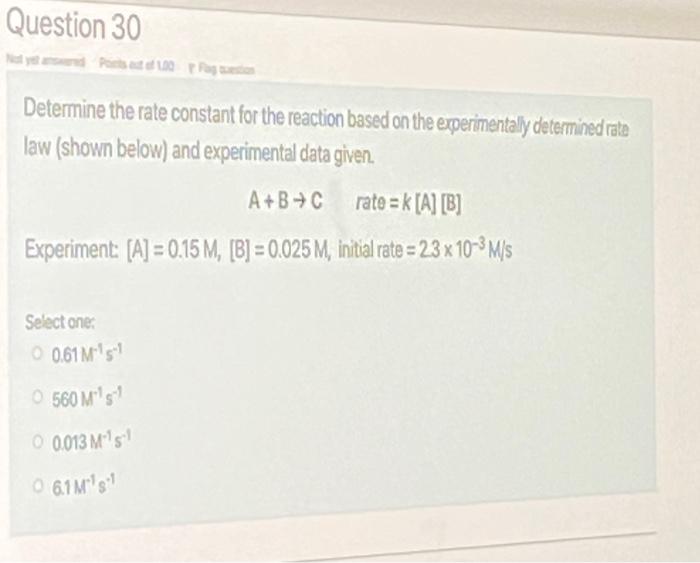 Solved Question 30 Determine the rate constant for the | Chegg.com