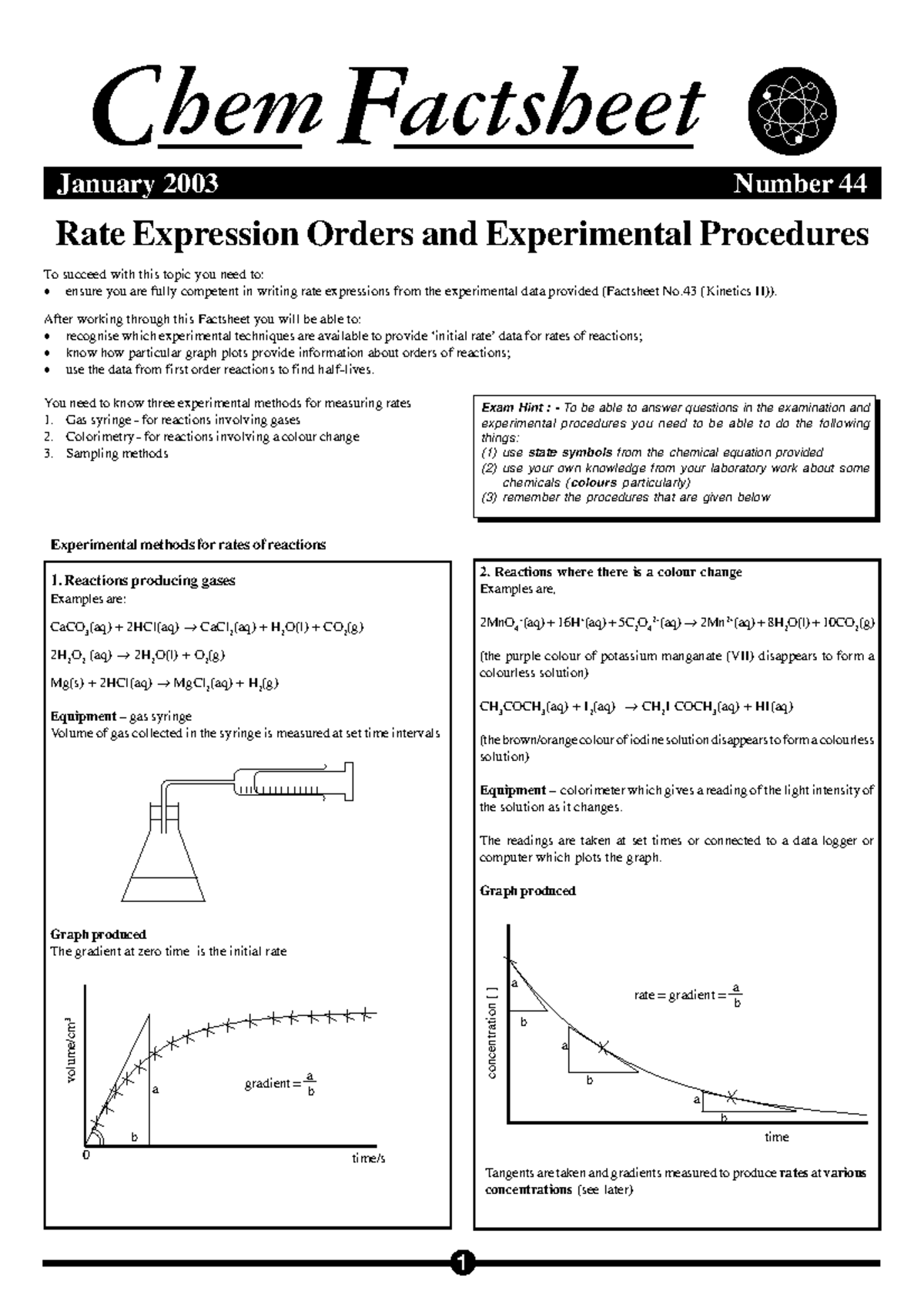 44 Rate Expression orders - Experimental methods for rates of reactions ...