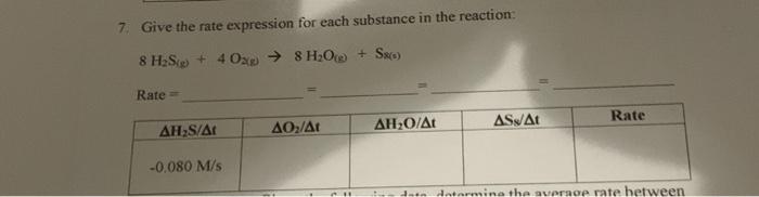 Solved 7. Give the rate expression for each substance in the | Chegg.com
