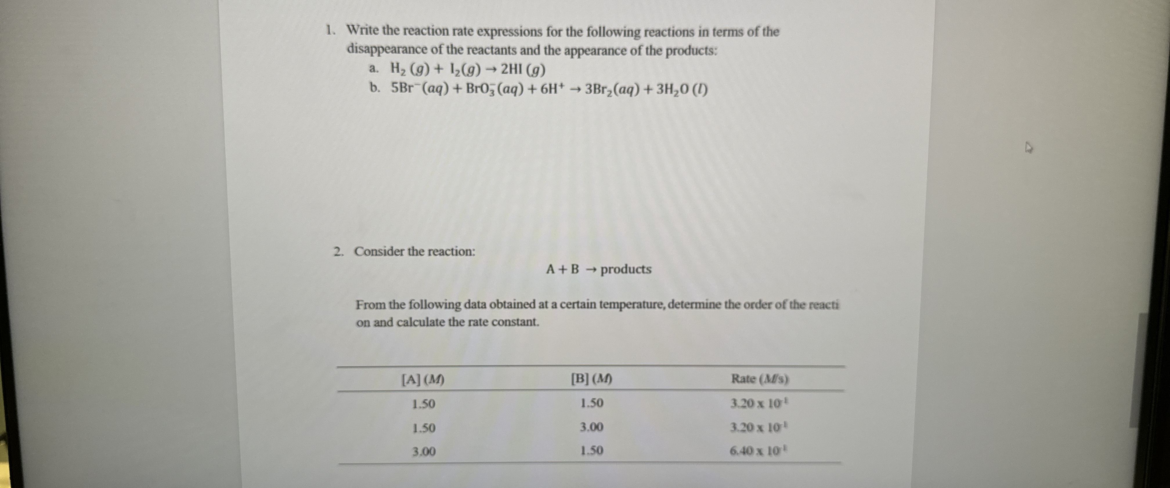 1. What is the rate expression for the following | Chegg.com