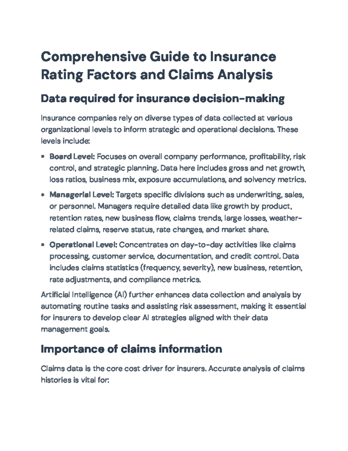 Comprehensive Guide to Insurance Claims Analysis & Rating Factors - Studocu