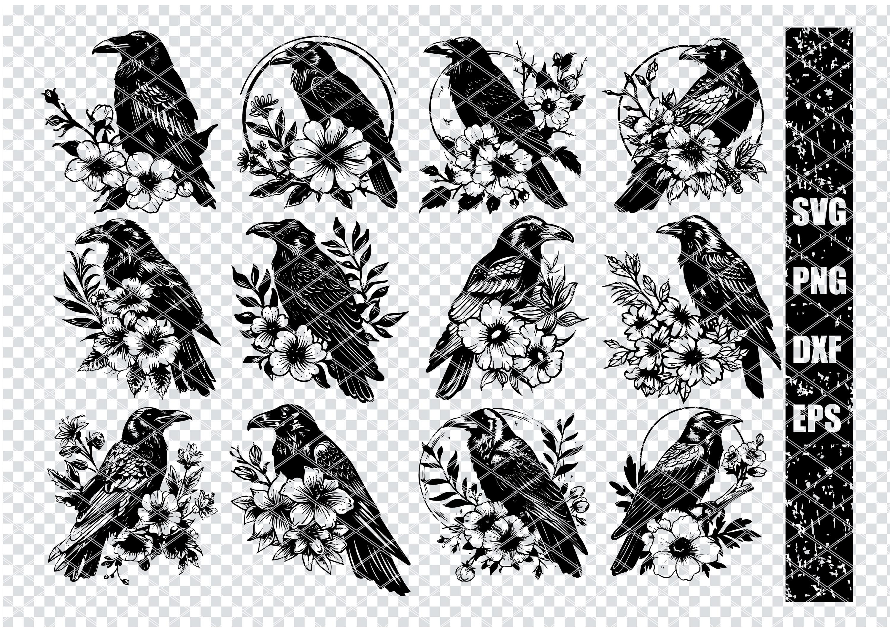 Raven Logos for Tattoos Pack X10 Graphic by SmartDesigns · Creative Fabrica