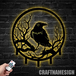 Custom Raven Metal Key Holder, Crow Moon Wall Led Decorative Art, Metal ...