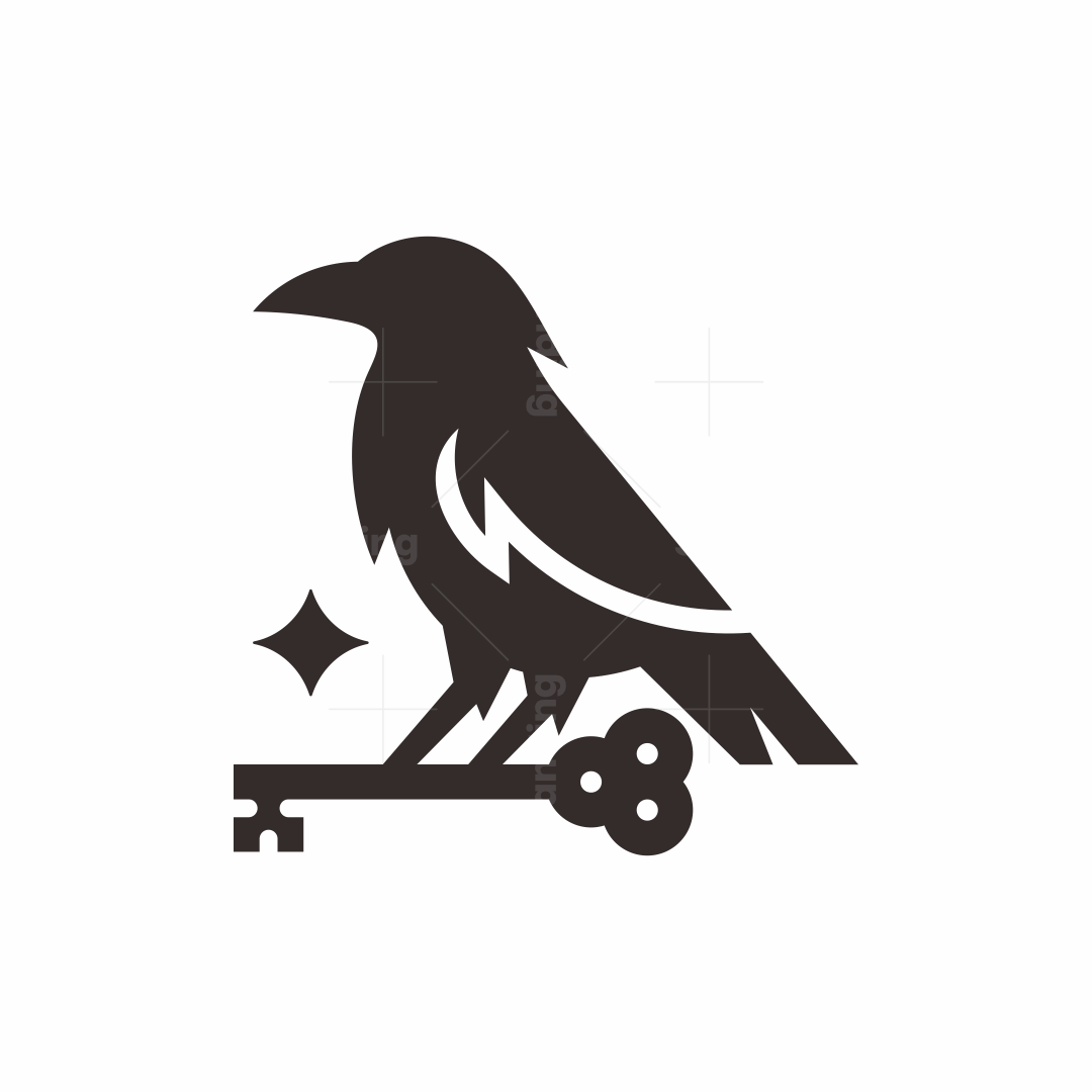 Iconic Raven With Key Logo | Logo design, Raven logo, Crow logo
