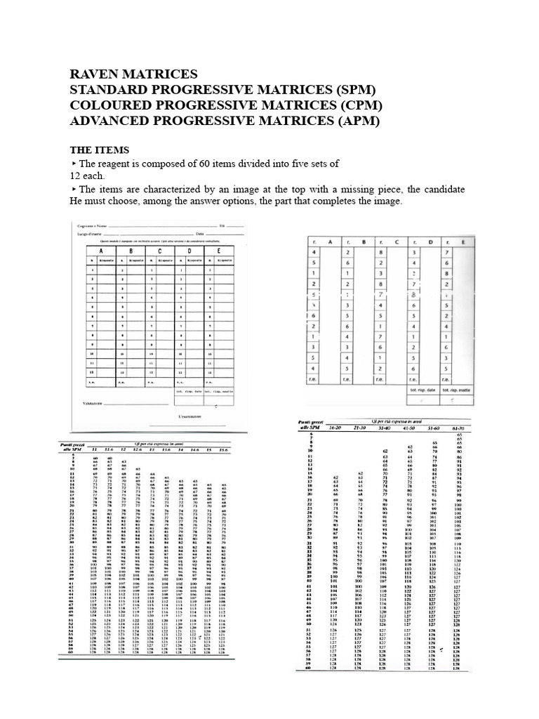 Raven's Progressive Matrices (Correction and Scoring Standards) | PDF ...