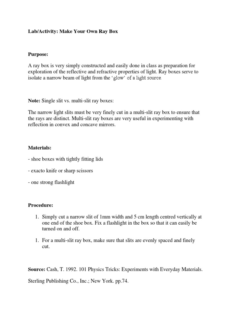 Lab/Activity: Make Your Own Ray Box | PDF | Home & Garden | Art