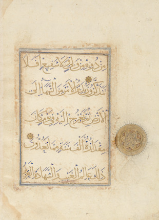Bonhams : A Qur'an leaf in rayhani script in gold, from a dispersed 30 ...