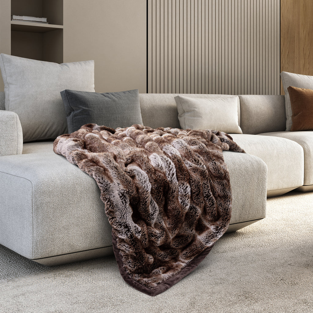 Raynard Faux Fur Throw, Fake Fur Blanket for Bed or Sofa With Brown ...