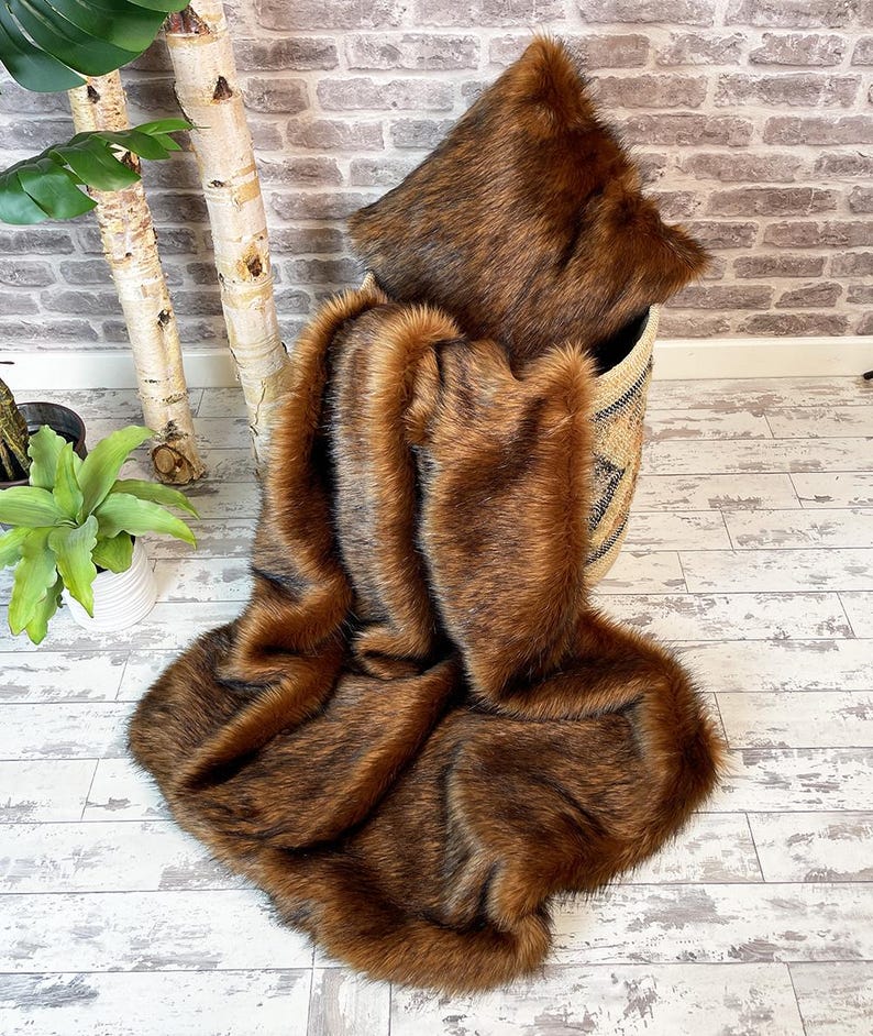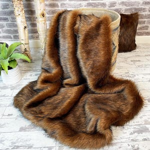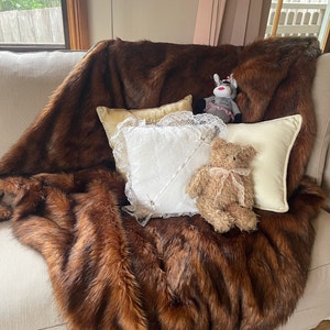 Brown Faux Fur Throw Blanket, Raynard With Soft Faux Suede Lining - Etsy