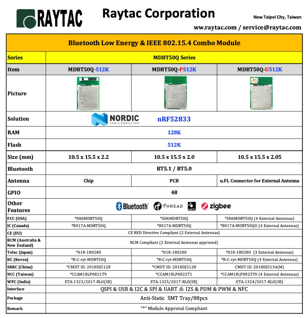 Nordic Bluetooth & WiFi Module: Raytac BLE Module Line Summary & Spec ...