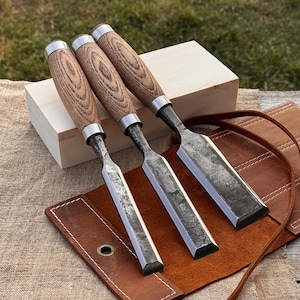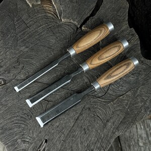 Wood Chisel Set 3 Pcs. Razor Sharp Blade. Hand Forged From Hardened ...