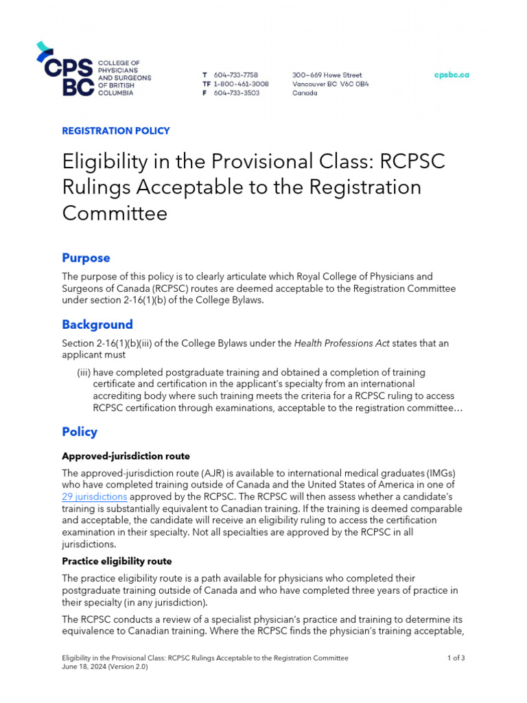 RP Eligibility in The Provisional Class RCPSC Rulings Acceptable To The ...