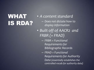 RDA: Resource Description and Access | PPTX