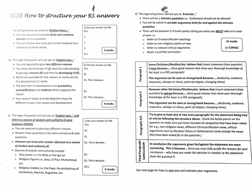 GCSE RE QUESTIONS STRUCTURES | Teaching Resources