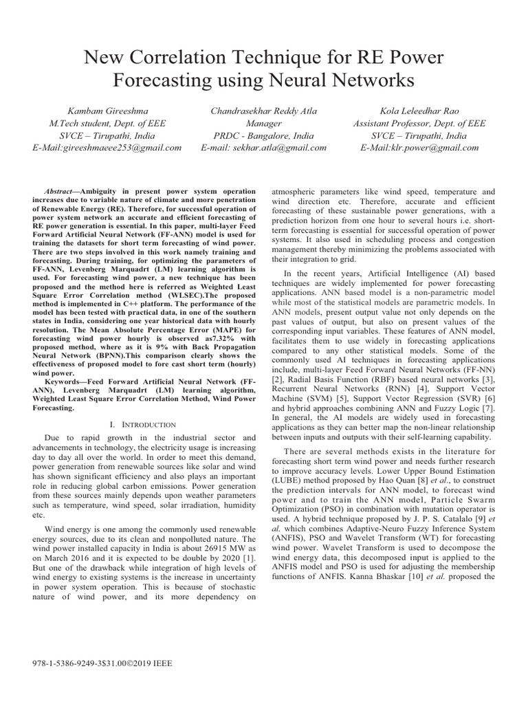 New Correlation Technique For RE Power Forecasting Using Neural ...