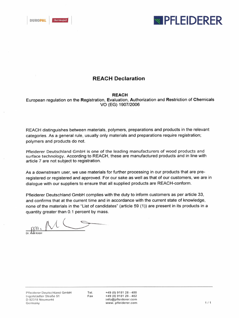 REACH Compliance Declaration | PDF