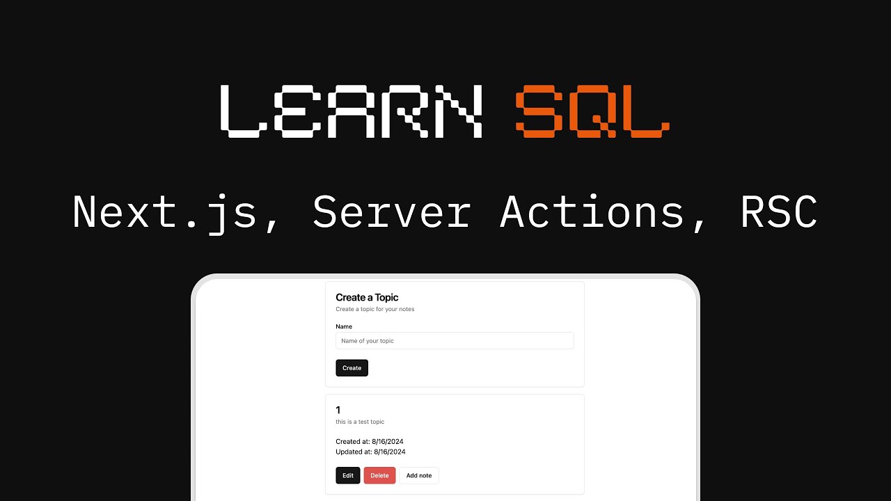 Learn SQL with Next.js Server Actions and React Server Components - YouTube